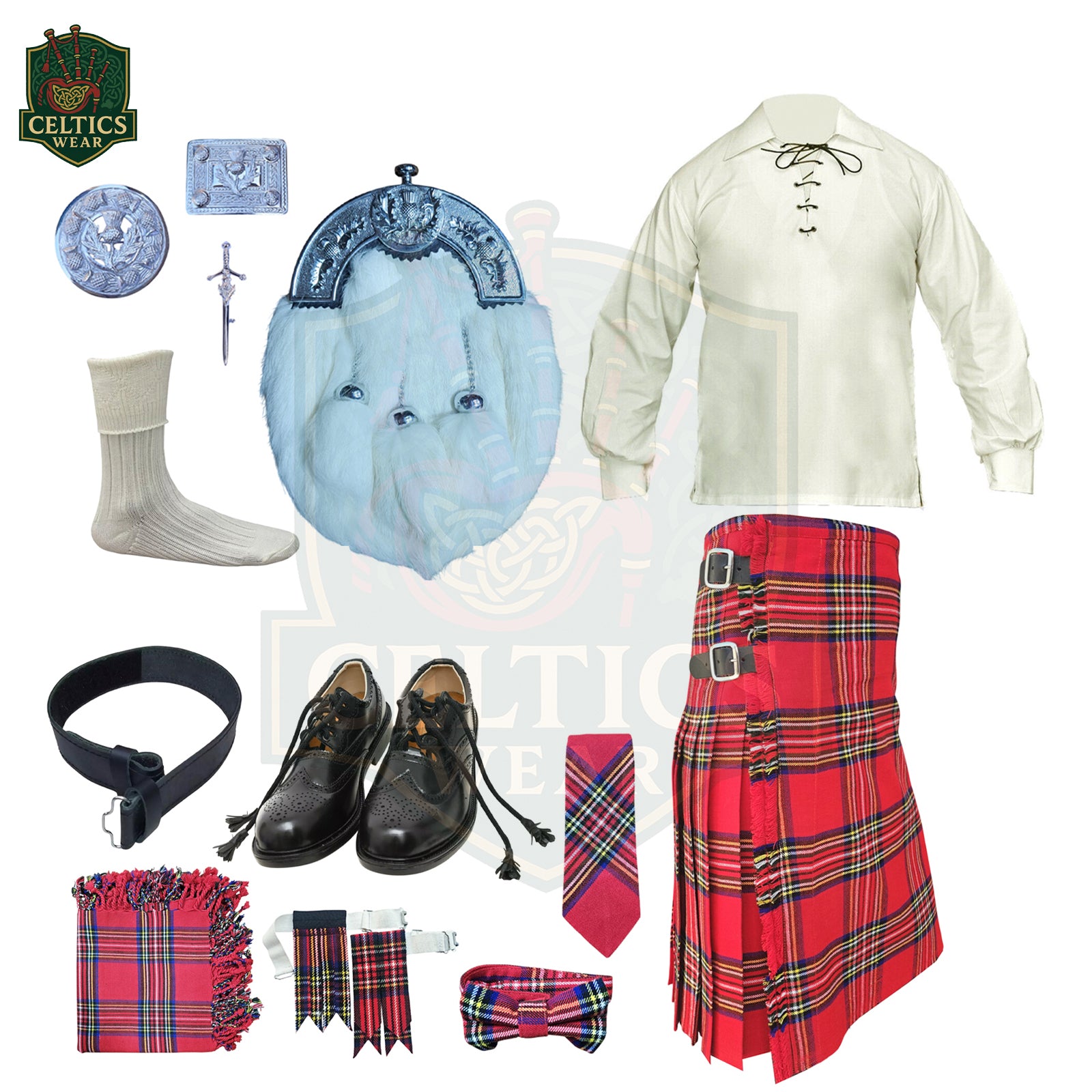 Complete Royal Stewart Kilt Outfit Set – Traditional Scottish Highland Dress for Men